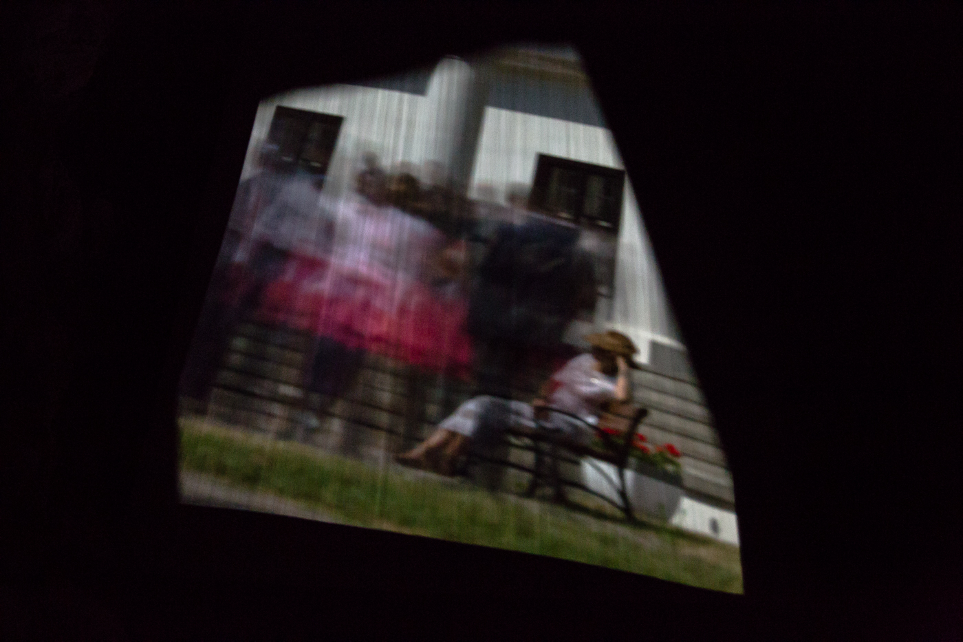 Na fundamentach budowli wyświetlają się ludzie i życie rozgrywające się na placu przed Dworkiem Białoprądnickim. Projekcja rozgrywa się w czasie rzeczywistym, stwarzając możliwość dla kontemplacji świata zewnętrznego, ze skrytej pod ziemią baszty.
