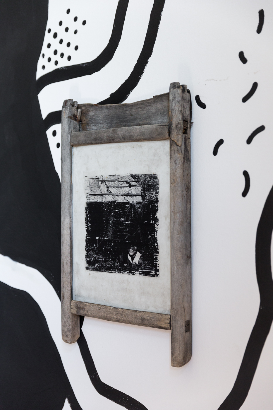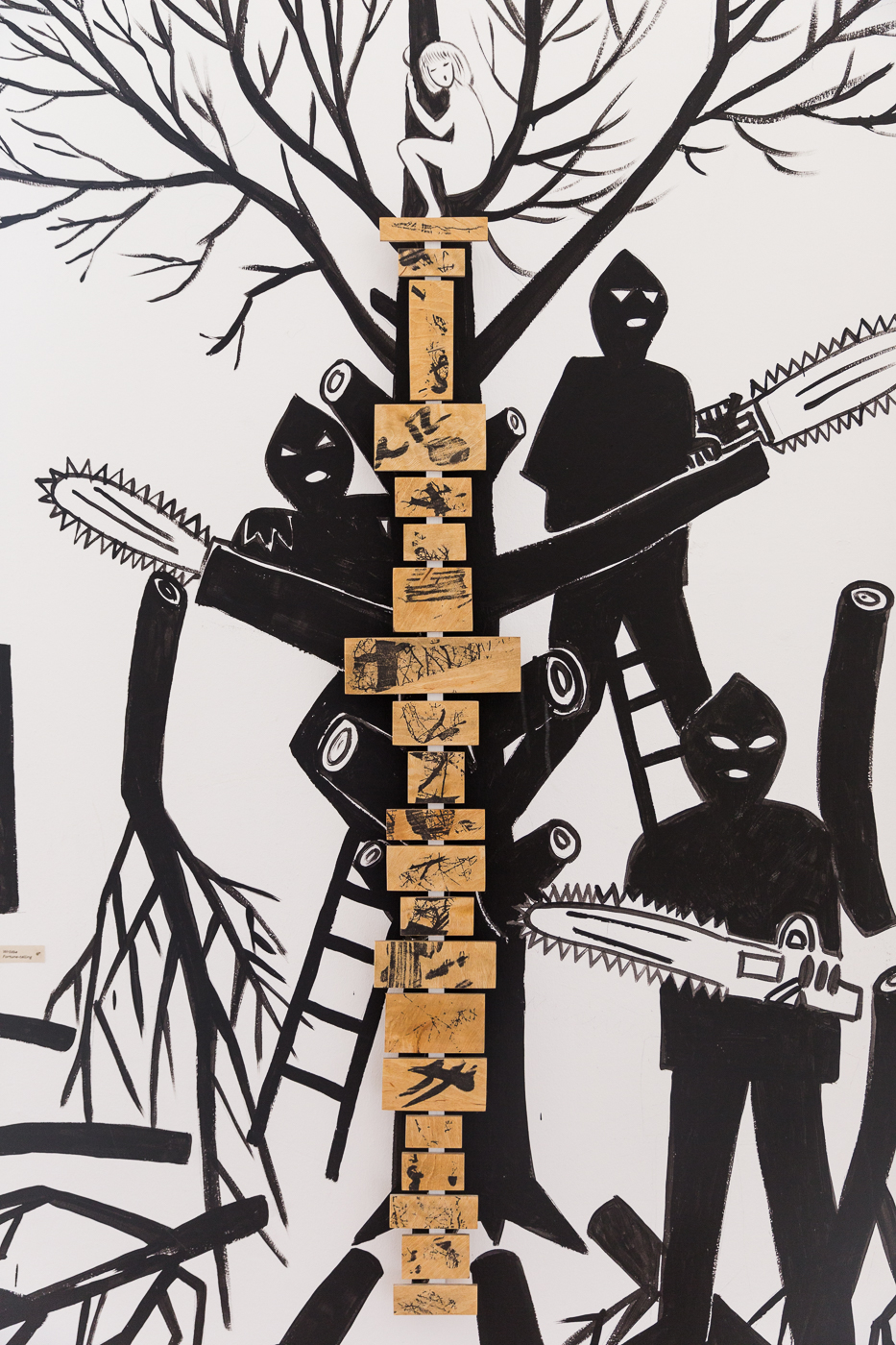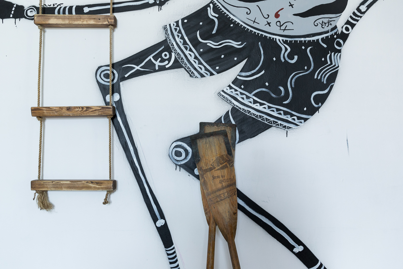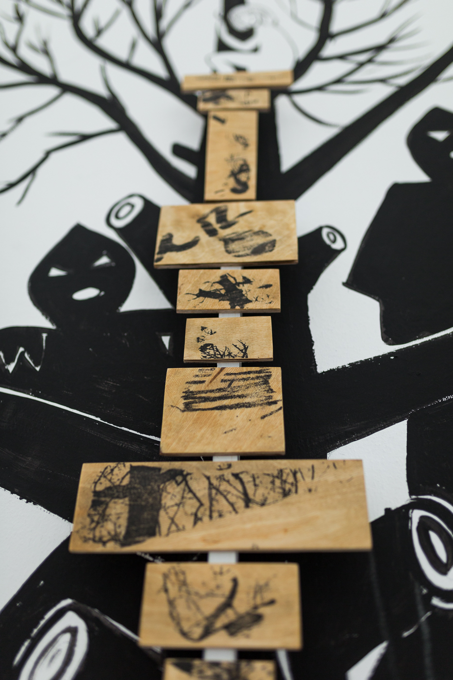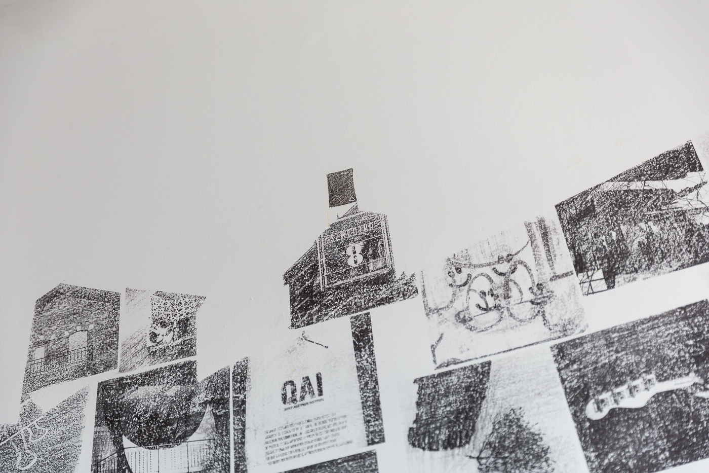 Dom w szczególe, detal muralu i instalacji prezentowanej w Kraków Art House