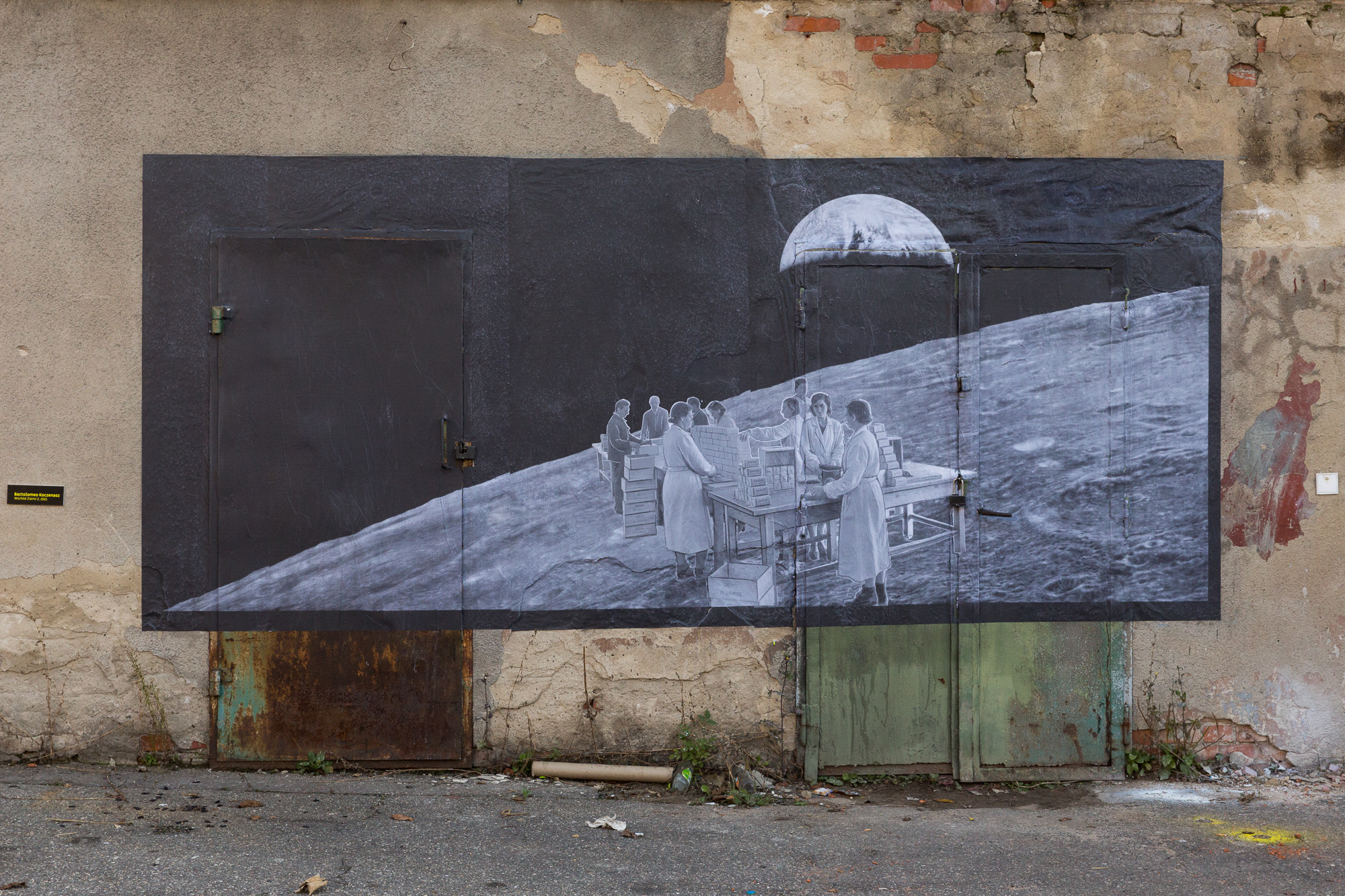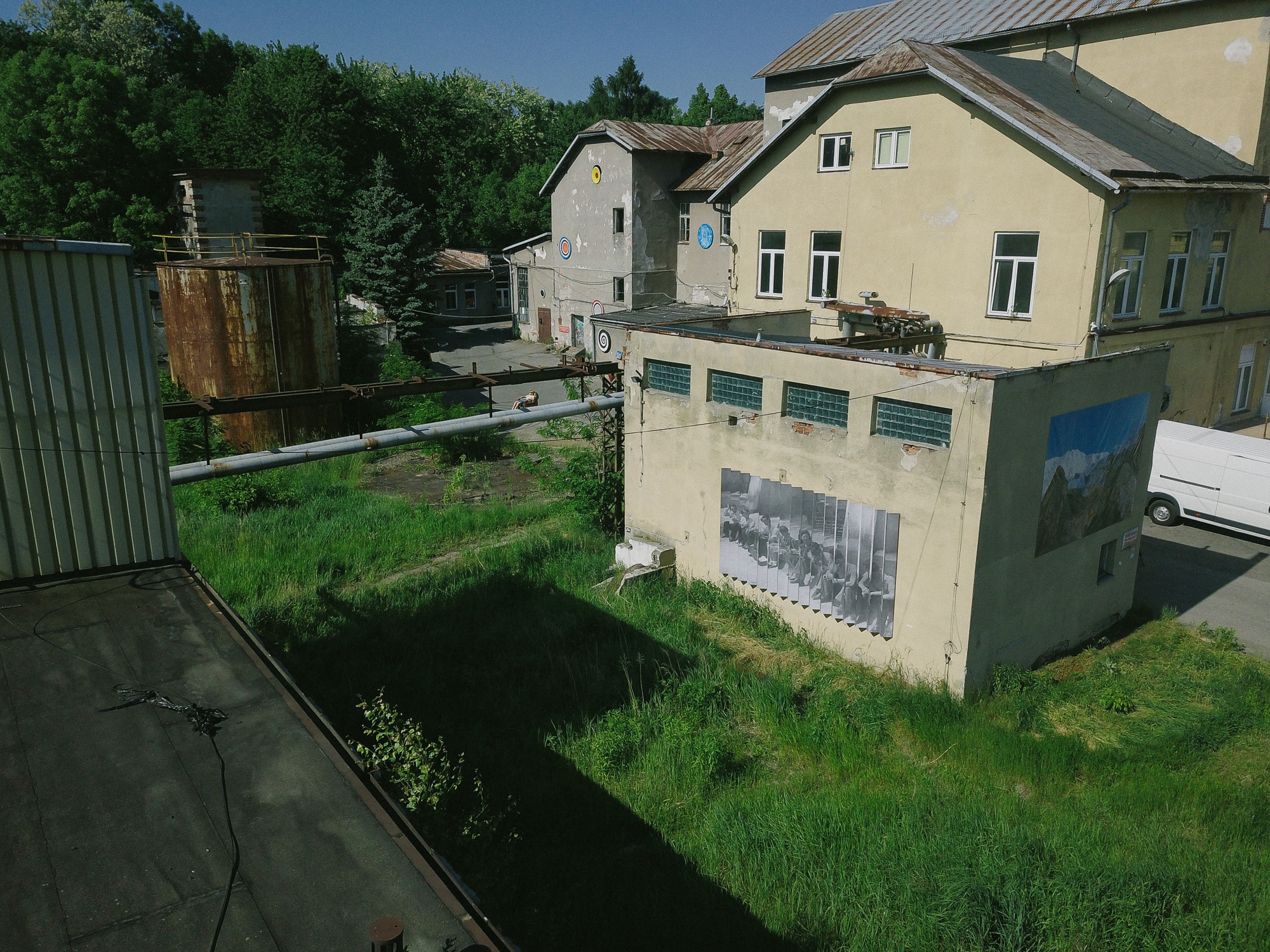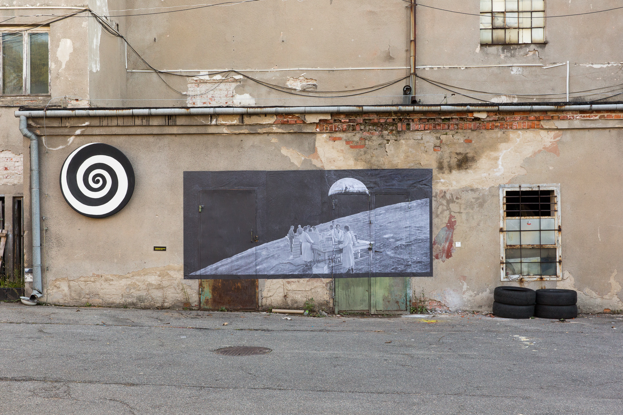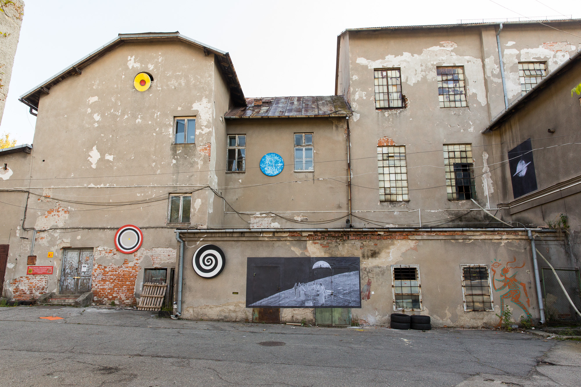 Realizacje site-specific były bezpośrednio wpisane w architekturę budynków – dachy, elewacje i surowe wnętrza. Trzy kolaże bazowały na archiwalnych fotografiach z okresu funkcjonowania zakładu, konfrontowanych z jego współczesnym stanem. Historyczne obrazy uruchamiały pamięć miejsca i jego przemysłową tożsamość. Dawny proces fermentacji – chemiczny i produkcyjny – został zastąpiony fermentem twórczym. Interwencje nie maskowały historii, lecz ją eksponowały, dopisując kolejną warstwę do przemysłowego palimpsestu.